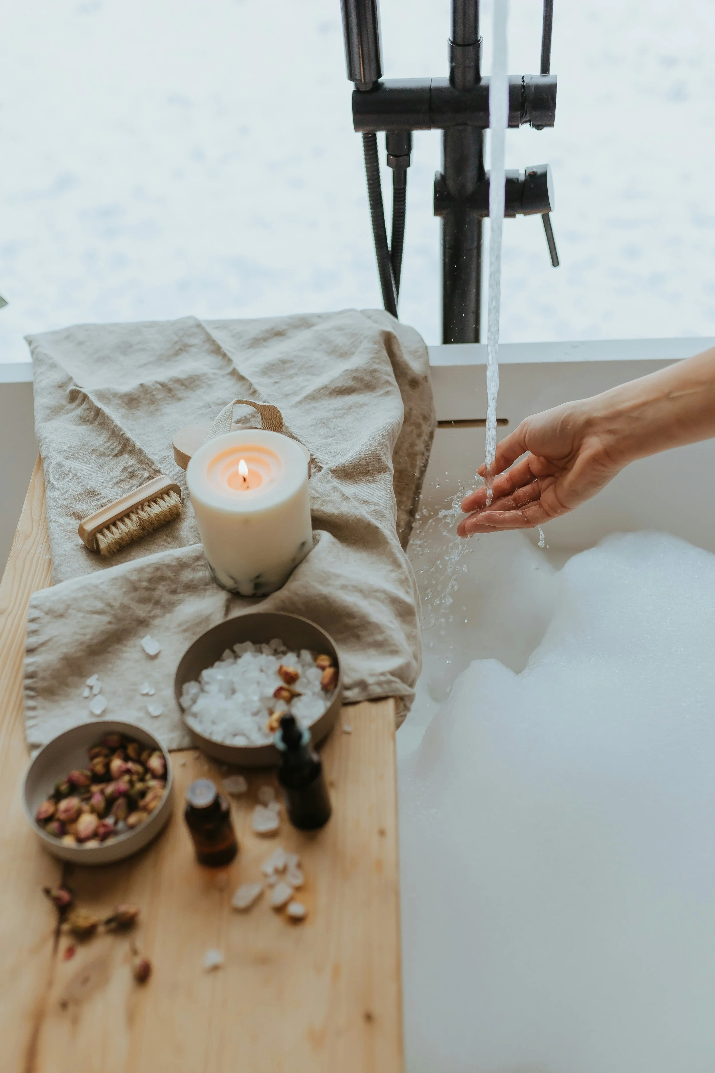 Running a warm bath with calming scents